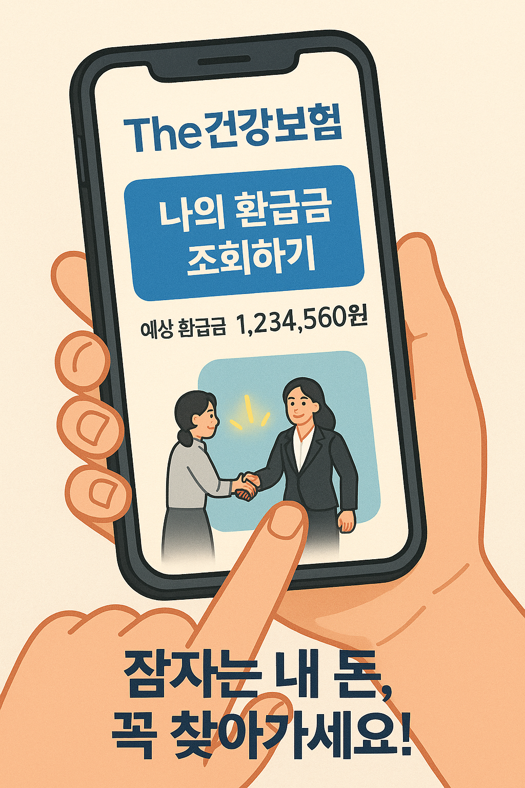 - 안내문을 받으셨다면, 전화(☎1577-1000), 공단 홈페이지, 'The건강보험' 앱을 통해 간편하게 본인 명의 계좌로 환급을 신청할 수 있어요.